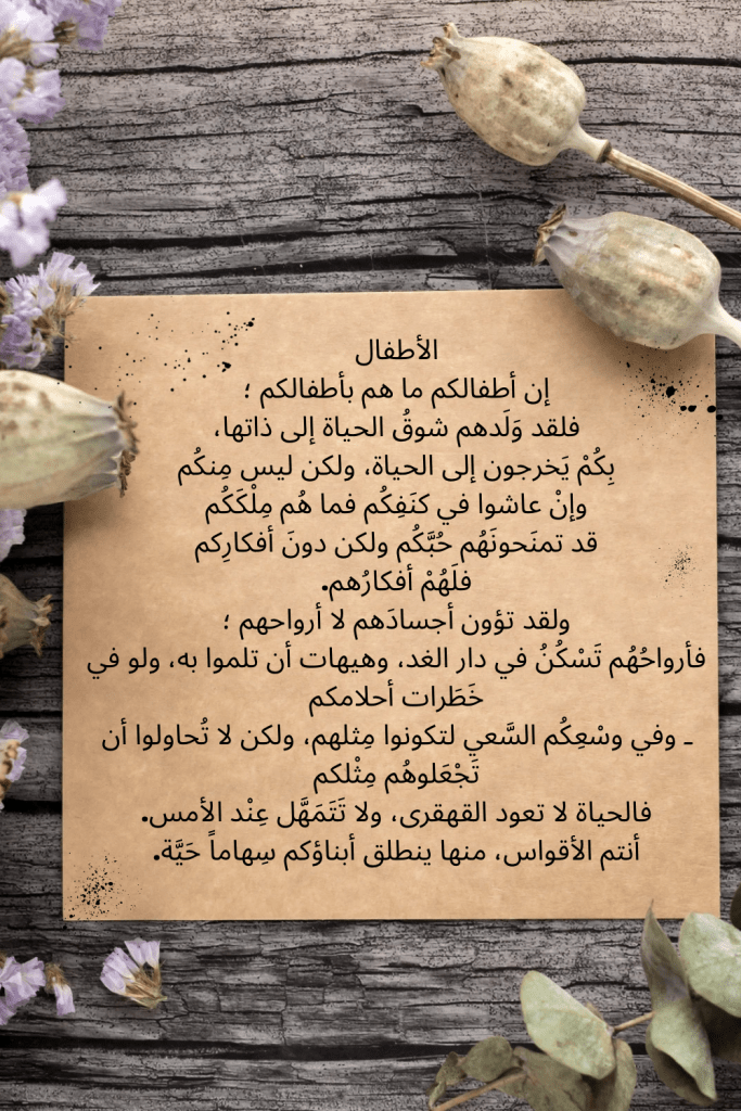 Vos enfants ne sont pas vos enfants – extrait du recueil Le Prophète